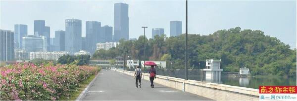 西丽水库大坝已成相近市民空闲打卡点,现场通达路段全程约1.8公里。