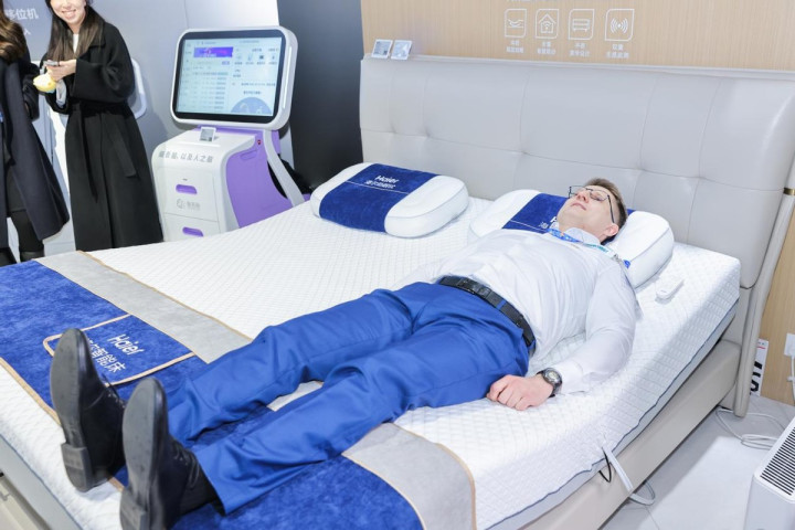 围绕银发父老的普遍生计需求,自2022年入局适老产业三年多来,海尔灵敏康养通过整合各人资源不时构建了就寝、卫浴、出行、健康、康复五大灵敏场景。本次展会现场,这些场景的完好呈现,让参不雅者仿佛踏进于异日的灵敏养老社区,零距离感受科技带来的和顺与浅陋。就寝场景中,海尔天悦智能床成为焦点。其搭载AI双重无感体征监测时代,可及时捕捉心率、呼吸等数据,零重力格式促进下肢血液回流,智能助起功能让父老松驰起身下床。现场不雅众纷繁躺下体验“摇篮哄睡”与“柔性助起”的贴心呵护,感受科技看管下的省心就寝。