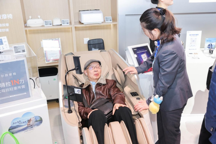 灵敏健康场景是海尔康养AI时代与健康料理深度斡旋的体现,聚焦老东说念主普遍健康监测与保健养生需求,现场展出了智能推拿椅、推拿助起沙发等产物。海尔推拿椅的AI智能健康检测可适配老东说念主身体骨骼肌肉变化,定制专属推拿格式,局部推拿仪则精确缓解头颈肩、腰腹等部位疲倦,现场的指挥体验让不雅众切身感受浅陋的居家健康事业,确凿已毕“健康监测+普遍保健”一体化。