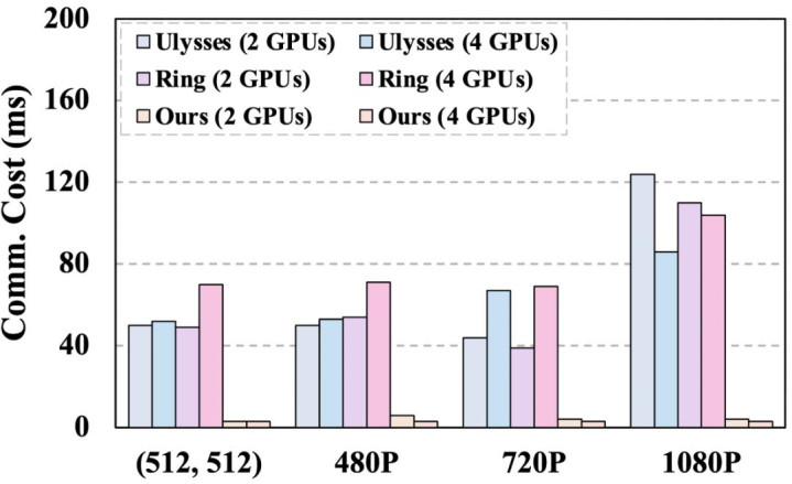 进一时局,序列并行(Sequence Parallelism)门径(如 Deepspeed-Ulysses 和 Ring-Attention)在推理中需要在每个 DiT Block 实践一次跨建造通讯,从而引入了显耀的通讯支拨。通讯过程骨子上也属于数据搬运操作,与内存造访共同加重了系统数据传输支拨。