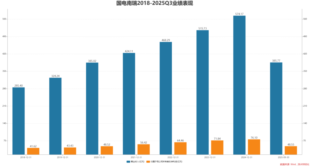 国电南瑞2025年三季报表示,公司前三季度达成交易收入385.77亿元,同比增长18.45%;包摄净利润48.55亿元,同比增长8.43%。