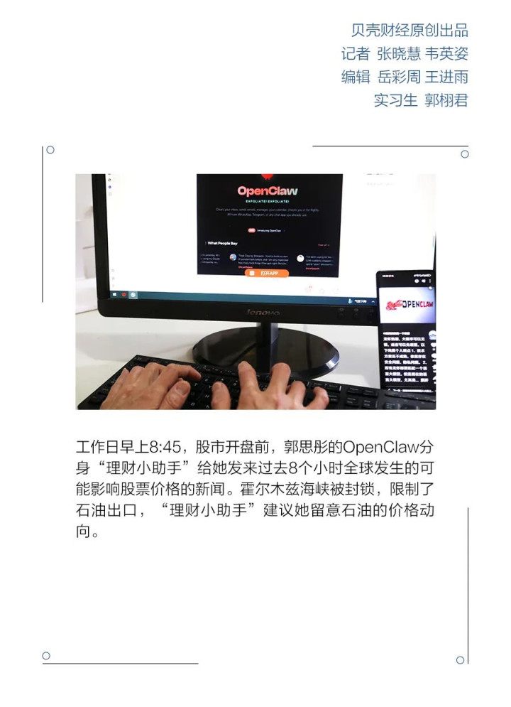 责任日早上8:45,股市开盘前,郭念念彤的OpenClaw分身“答理小助手”给她发来以前8个小时全球发生的可能影响股票价钱的新闻。霍尔木兹海峡被顽固,限制了石油出口,“答理小助手”冷漠她钟情石油的价钱动向。