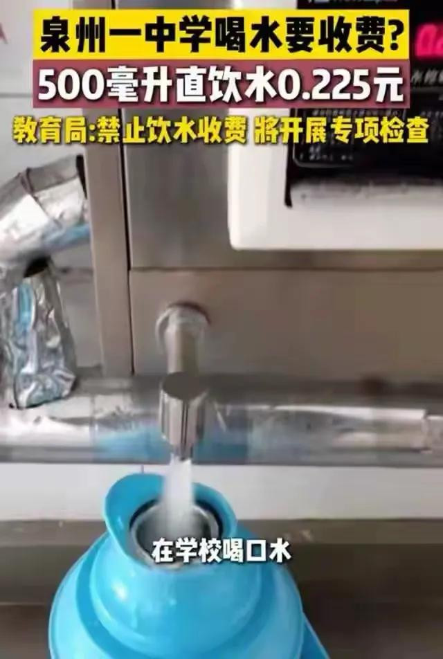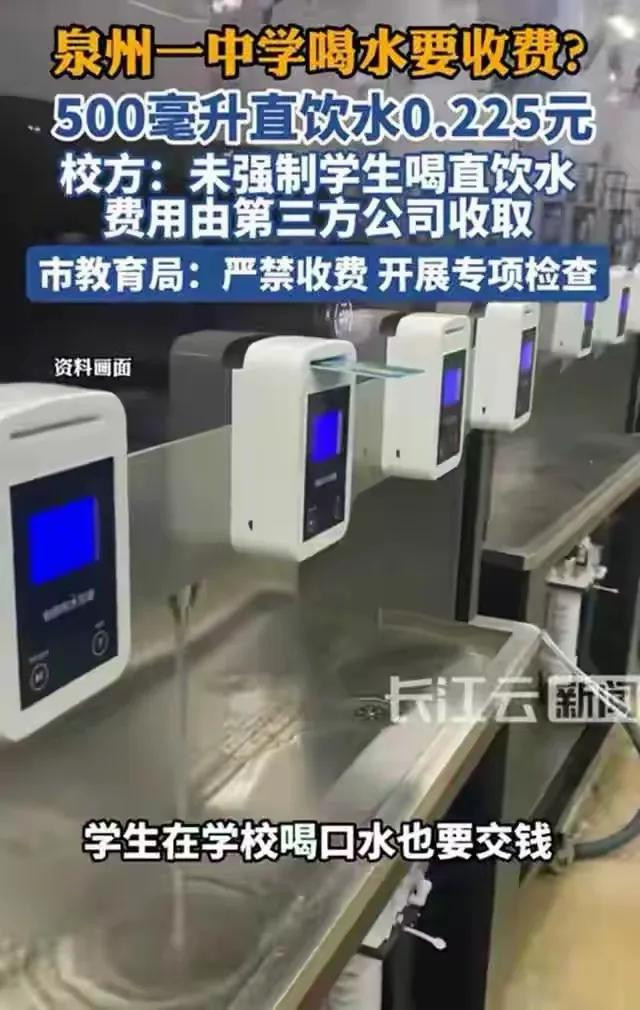 校园饮水收费引争议:500毫升0.225元,教师局严令退却